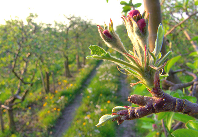 Unser Obstanbau findet in Finkenwerder auf 25 ha als integrierter Anbau statt, d.h. dass unsere Bäume naturnah und umweltschonend gepflegt werden, z.B. indem nur nützlingsschonende Mittel eingesetzt werden.