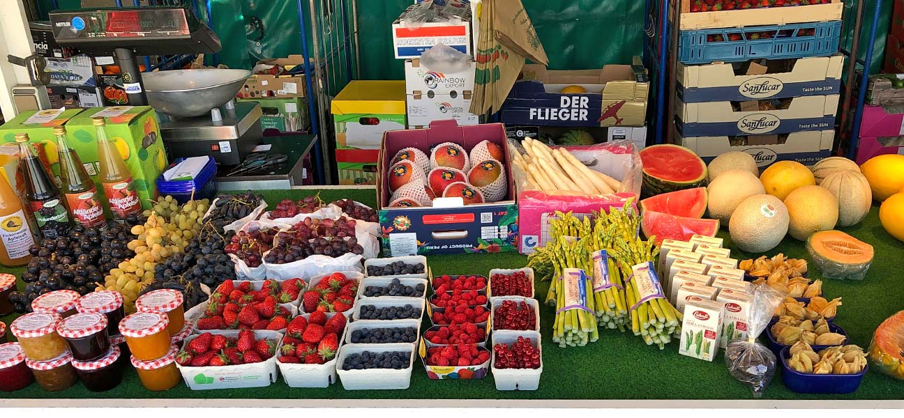 Dort werden selbsterzeugtes Obst (Äpfel, Birnen, Kirschen, Zwetschen, Pfirsiche und Nektarinen) und Obst aus aller Welt (Ananas, Mango, Papaya, Weintrauben, Kiwis, Apfelsinen u.v.m.) verkauft.
